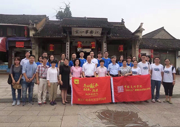8月6日,院党委书记钱晓芳、浙江广电集团副总编辑顾顺坤分别率我院纪委、团委、浙江广电集团人事管理部、团委负责人一行,赴金华浦江看望正在那里开展“齐心服务G20,两美浙江我践行”社会实践活动的我院社会实践小分队的青年师生和共同参与实践活动的传媒青年。浦江县委书记施振强、县长程天云、常务副县长郑文红、团县委负责人等一同参加活动。