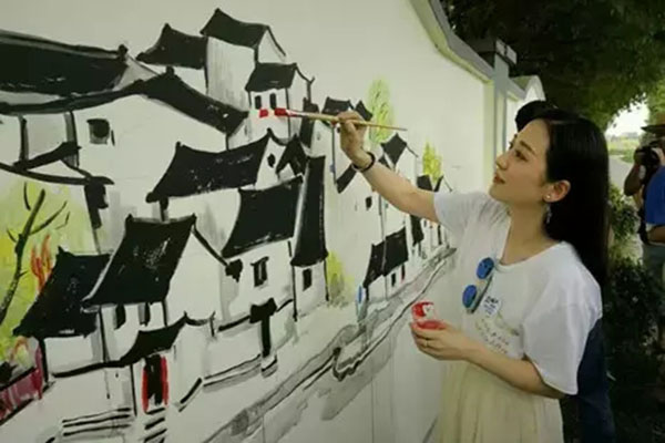 浙江卫视主持人罗希正在墙绘一副白墙灰瓦的小镇风景图,“我从来没有想过在雪白的一面墙上,通过双手可以创造得那么美好,这种美好也正映衬了我们的‘两美浙江’——美丽浙江和美好生活。”