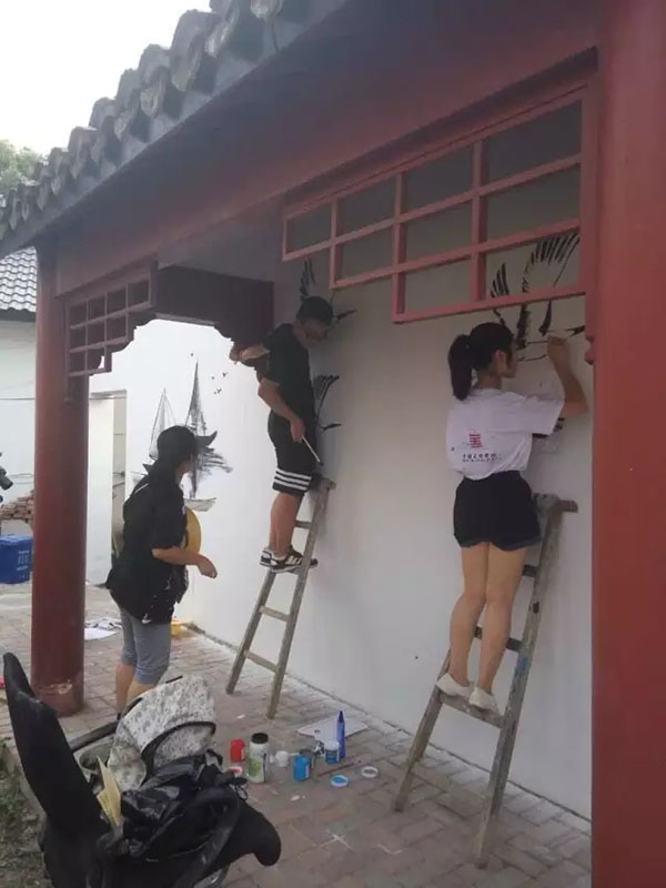 本站实践活动以“诗画江南,美好生活”为主题,开展墙绘活动并先后走访钟管蠡山、德清县城市展示馆、公民道德教育馆、莫干山清境文创园,感受山水人文、深入采风创作。带队老师曹莅宸说,本次墙绘主要围绕美丽乡村建设,反映出浙江美好生活。希望可以推广到各地,带动青年朋友们一起来描绘美丽家乡美丽家园。