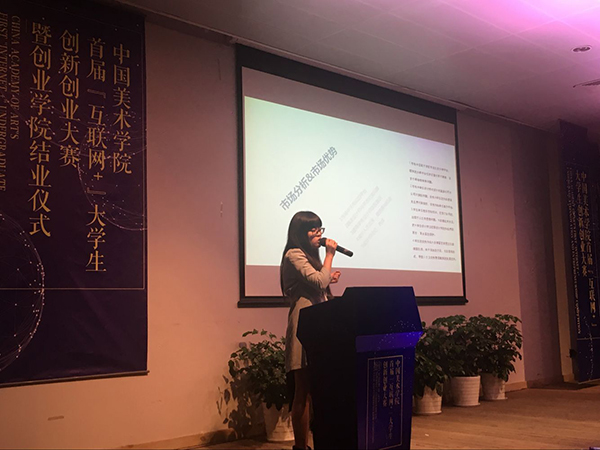 6月12日我院首届互联网+大学生创新创业大赛暨创业学院结业仪式在南山校区学术报告厅圆满落下帷幕。大赛由中国美术学院创业学院主办,邀请了国际创业学院(中国)副院长周文芳、中国美术学院设计学院教授、创业导师王炜民、银江孵化器投资部经理高鹏飞、杭州加号创客空间创始人朱伟米、浙江爱晚基金管理有限公司王亦平、麦鲜投资经理陈斌等六位评委, 赛伯乐等13家创投公司嘉宾。我院党委副书记胡钟华,学工部长竺照轩,教务处副处长佟飚,研工部副部长周艳、学工部副部长潘晓蕾、团委书记徐增鎏、之江创意园管委会副主任胡沂佳出席了本次大赛。