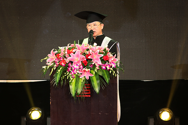 手工艺术学院院长周武教授代表教师发言,他表示作为教师,都会为自己培养的学生即将走向社会,走向新的人生而感到高兴,也会因同学们背负行囊离别母校而百感交集。周武向同学们提出了四点希望:明确定位,规划人生;学会包容,谋求发展;树立信念,持之以恒;哲匠精神,铭记校训。同时,他也祝同学们诸事随愿,事业有成。