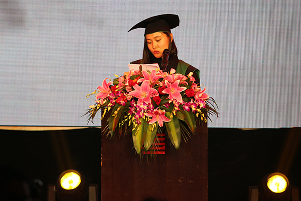 艺术人文学院本科毕业生朱玉、跨媒体艺术学院哥伦比亚籍博士毕业生土木、设计艺术学院大三学生杨树平分别代表本科生、研究生、在校生发言,表达了对母校的深厚感情和对老师、家长、社会的感激之情,并表达了牢记肩负的使命、在艺术道路上积极探索的决心。