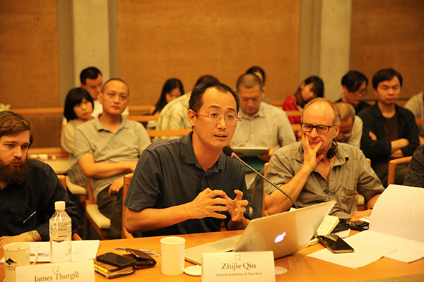 来自世界各地的重要学者和艺术家,Andrew Pendakis(加拿大布鲁克大学)、Jan Hogan(澳大利亚塔斯马尼亚大学)、James Thurgill(日本东京大学)、Mark Waston(美国克莱顿州立大学)、Michael Dutton(伦敦大学金匠学院教授)、Rupert Griffiths(独立研究员、艺术家)、谢少波(加拿大卡尔加里大学教授)、Scott Lash(伦敦大学金匠学院教授)、秦思源(策展人、艺术家)、陈方山(浙江大学艺术学院环境艺术系教授)、管怀宾(中国美术学院跨媒体艺术学院院长)、花俊(中国美术学院中国画与书法艺术学院副教授)、李翔宁(同济大学建筑与城市学院教授)、潘力(上海大学美术学院教授)、邱志杰(中央美术学院实验艺术学院教授)、汪民安(首都师范大学文学院教授)、翁剑青(北京大学艺术学院教授)、夏季风(北京蜂巢当代艺术中心)、颜名宏(台湾台中教育大学)、杨奇瑞(中国美术学院雕塑与公共艺术学院院长)、赵明(中国美术学院雕塑与公共艺术学院)(按姓氏字母次序排列),在充足的发言时间内,就本人的相关思考、研究和艺术实践做出了充分的展示和说明,随后的集体评议和讨论更是紧张激烈,成果丰富。
