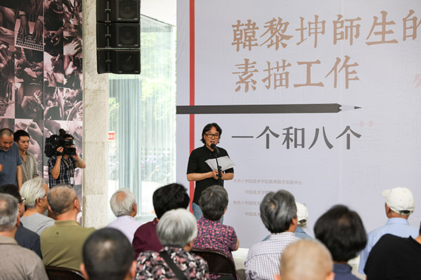 展览开幕式由中国美术学院副院长王赞主持,院长许江宣布展览开幕并发表致辞:“这不仅仅是一次展览,而且是一条长路,是由素描牵出的一群人的学术情怀。韩黎坤教授的八位高足目前都已经是成熟甚至是知名的艺术家,又都在学院担当重要的学术任务,但是为了素描、为了今天的造型基础训练,也为了他们独特的师生情,他们聚在了一起。”