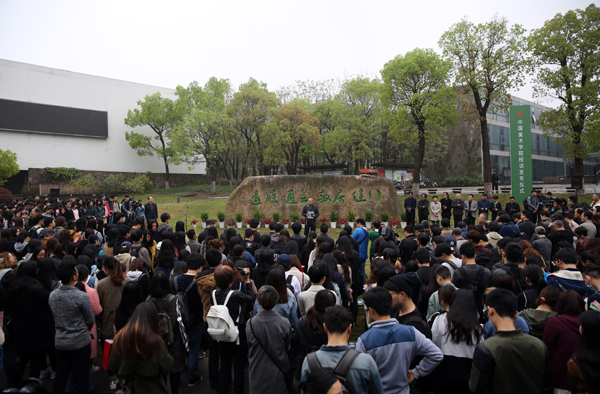 4月8日上午8点,值此学院88周年校庆之际,中国美术学院校训发布仪式在象山校区2号楼前的大草坪上隆重举行。学院党政班子成员钱晓芳、许江、胡钟华、王赞、孙旭东、刘正、姜玉峰、杭间、高世名、应达伟、傅巧玲、徐国强以及学院中层干部、学术委员会成员、各院系师生代表和国家奖学金获得者共500人参加了发布仪式。发布仪式由党委副书记胡钟华主持。