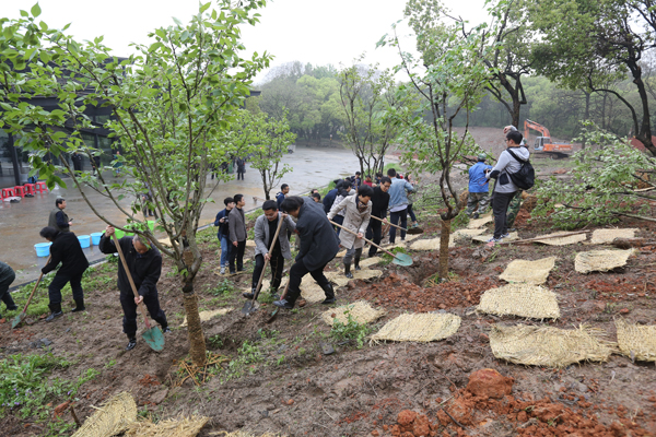 校训发布仪式结束后,学院领导和师生还参加了植树活动,为“塑造校园美境,建设人文校园”添砖加瓦。