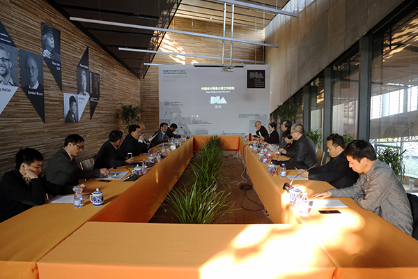 2016年4月18日下午,中国设计智造大奖 (Design Intelligence Award) 工作汇报会在中国美术学院象山校区民艺馆举行。省委常委、常务副省长袁家军,省政府副秘书长孟刚,省财政厅副厅长金慧群,省经信委副主任马锦跃,省政府办公厅工业处处长詹佳祥,副处长傅剑锋,我院党委书记钱晓芳,院长许江,副院级领导、中国设计智造大奖组委会主席宋建明,党委委员、党院办主任徐国强以及中国美术学院、中国设计智造大奖组委会相关负责人参加会议。许江主持此次汇报会。