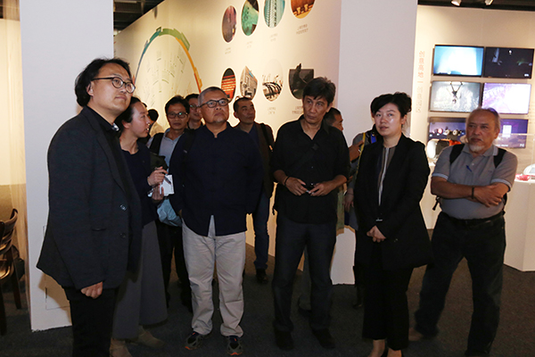 4月14日中午,文莱画家代表团在中国美术学院副院长高世明,外事处处长江河,中国美术学院教授顾迎庆、黄骏、陈磊、花俊、刘海勇等的陪同下参观了“中国美术学院建设世界一流大学十周年特展”。