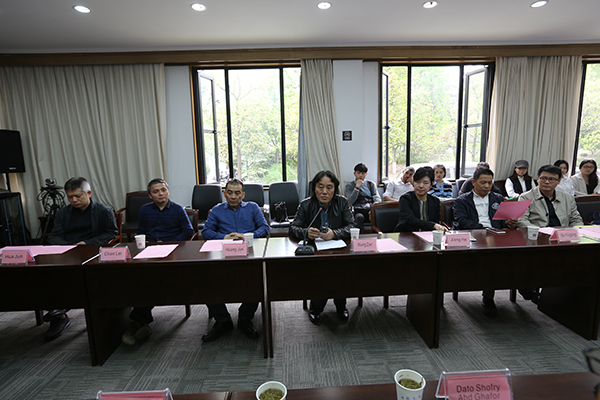 下午,中国美术学院副院长王赞主持"中国-文莱艺术家艺术座谈会",并对此次文莱画家访问交流活动寄予厚望,指出“希望大家能有一个非常愉快的写生交流,也期待着我们的交流能真正变成学术交流、情感交流、艺术交流。”座谈会中,王赞向代表团介绍了中国美术学院的机构建设与办学特色。“大学的文化交流将会着重发展,美院将会把留学生培养纳入学校的发展计划中,我很期待文莱学生来美院进行文化的交流。下一代的学生将会继续我们的步伐,进一步进行文化交流。”沙福里对大使馆的支持及中国美术学院领导的欢迎表示了感谢。他认为此次交流是促进中文文化交流非常好的契机,并诚邀美院领导和艺术家访问文莱,共谋中文两国院校的艺术合作与发展。奥斯曼表示,此次访问令自己十分震撼,中国美术学院具有非常完备的学科,通过交流学习了综合性美术学院的设计和建设。另外,文莱画家代表团还表示将积极促进文莱学生参与中国美院的交流交换活动。