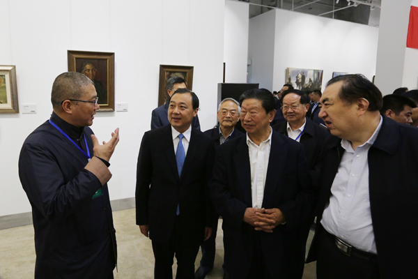 中央文史研究馆副馆长、中国文联副主席、中国美术家协会副主席冯远在肖峰、宋韧老师的陪同下参观了展览