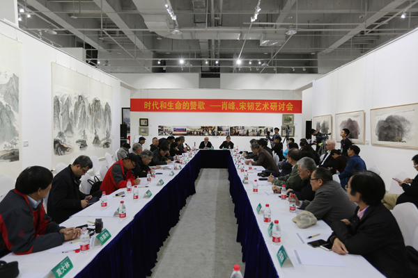 开幕式结束后,举行了“时代与生命的赞歌——肖峰宋韧艺术研讨会”,会议由中国美协理论委员会主任、中央美院教授邵大箴主持。