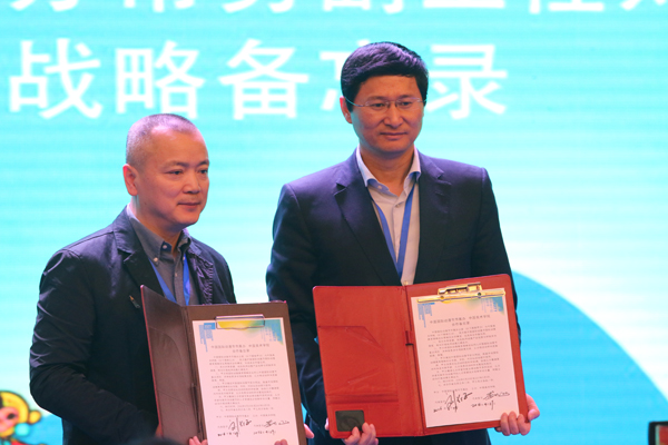 刘正与刘长征分别代表中国美术学院和国际动漫节执委会签署战略合作备忘录