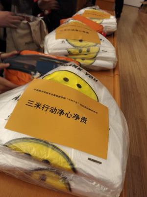 环保袋:为每位同学准备了“三米行动 精心净责”环保袋。希望从身边的好习惯开始,日行一善,必定能认真对待艺术的态度与热爱。