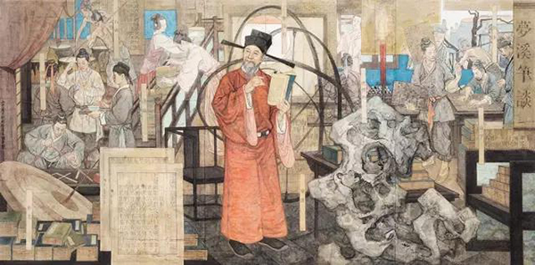 沈括与「梦溪笔谈」 尉晓榕、卢志强 中国画 183cm×367.5cm