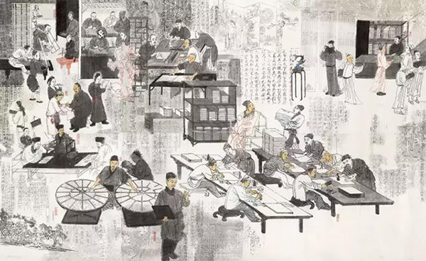 四库全书与南北七阁 张敏杰 版画 282cm×501.5cm