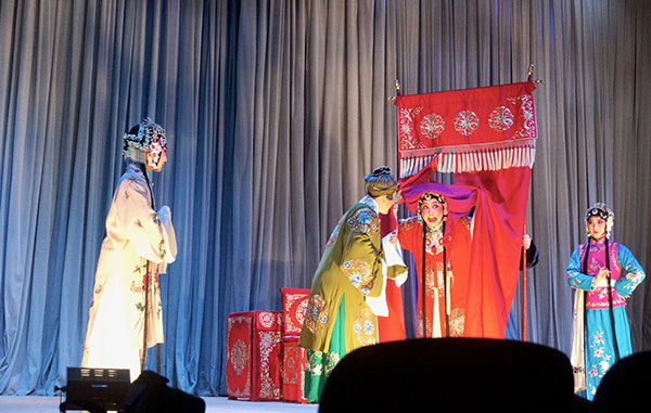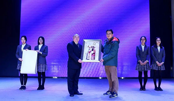 19点整,演出正式开始,国家京剧院与中国美术学院互赠纪念礼物。