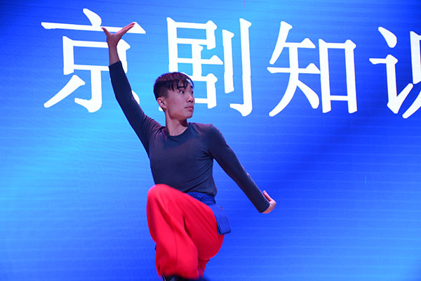 随后,国家京剧院一级演员刘魁魁进行了京剧知识讲座。他为大家介绍了京剧的起源、表演形式以及基本的行当,并通过青年演员的演示,更生动形象地让观众们对京剧的基本表演有一定的了解。