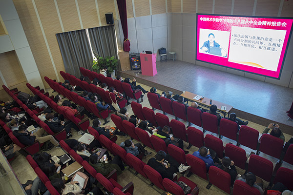 钱晓芳在主持时指出,胡坚部长的报告从严治党,保障我校向重点高校建设的推进具有重要的指导作用。她要求,全校上下要牢固树立“四个意识”,特别是核心意识和看齐意识,紧密团结在以习近平同志为核心的党中央周围,把学习宣传贯彻十八届六中全会精神、贯彻落实《条例》和《准则》,同学校的各项工作推进结合起来,统一思想,提高认识,凝心聚力,真抓实干,推进“两学一做”学习教育和学校党的建设各项工作,推进重点高校建设和“双一流”建设。