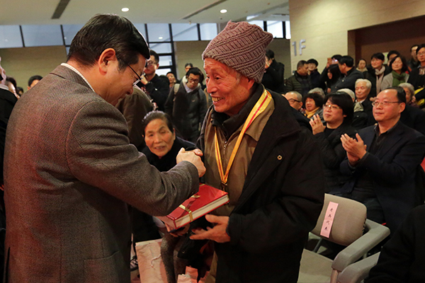 随后,胡钟华副书记宣布抗战老兵肖像画创作获奖名单,并由省委统战部副部长吴振宇,省侨联党组书记岑国荣,杭州市委常委、宣传部长翁卫军,民革浙江省委会副主委计时华,浙江美术馆馆长斯舜威上台为本次肖像画金奖获得者颁发证书。