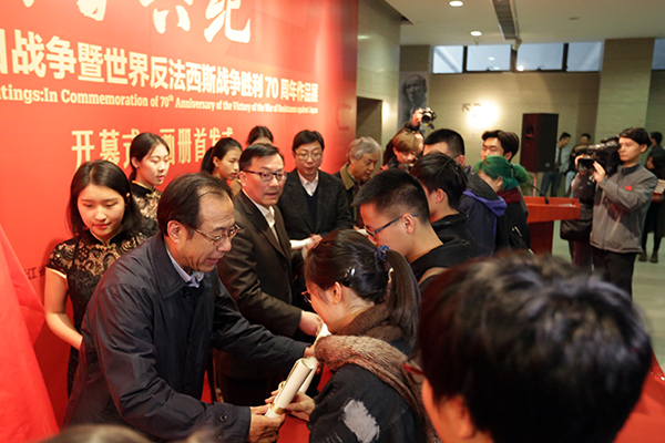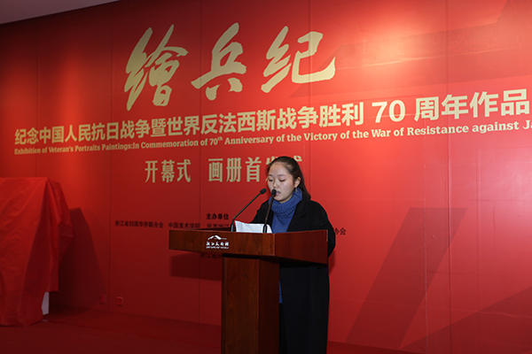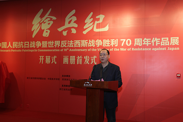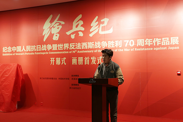 为进一步深度挖掘纪念中国人民抗日战争暨世界反法西斯战争胜利的重要意义,让更多的人关注关心老兵生活,营造铭记历史、传承精神的社会氛围,由浙江省侨联、中国美术学院、民革浙江省委会、浙江美术馆、浙江省美术家协会共同主办的“绘兵纪”——纪念中国人民抗日战争胜利70周年抗战老兵肖像画展开幕式暨画册首发仪式于12月15日下午三点在浙江美术馆隆重举行。
