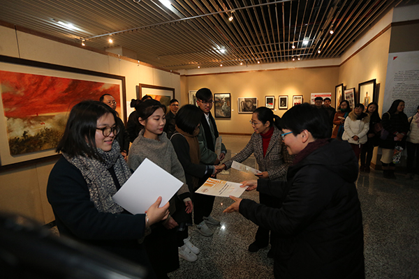 胡钟华在开幕式上致辞:“我要为90后的学生们点赞。在红色寻访等社会实践活动中,我们看到了国美学子的优良风貌。他们以老一辈艺术家为榜样,积极参加调研、寻访,认真学习和体悟,尽善尽美地完成每一个实践环节,取得了预期成果。暑期社会实践工作也是体现我院全员育人的重要载体,今年从动员组织到带队实践,再到评奖选优,都有各教学单位和职能部门的积极参与。”他还谈了自己对“美遇•艺行”的理解,并对学院的社会实践工作提出了希望:一是实践育人要结合思政课第一课堂,引导学生在社会实践中成长。二是围绕“美心育人”,引导学生在公益实践中成长。三是做好梳理总结,要在有美院特色社会实践模式研究和学生发展研究上做好总结提炼。