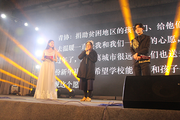 晚会开始,刘正代表学院党政向全院师生致新年贺词,回顾了2015年校内外大事与学院所取得的成绩,鼓励师生们在2016年取得更大的收获。晚会还邀请了部分经济困难学生家长前来观看演出,使晚会更添一分温馨与人文关怀,还设置了圆梦环节。