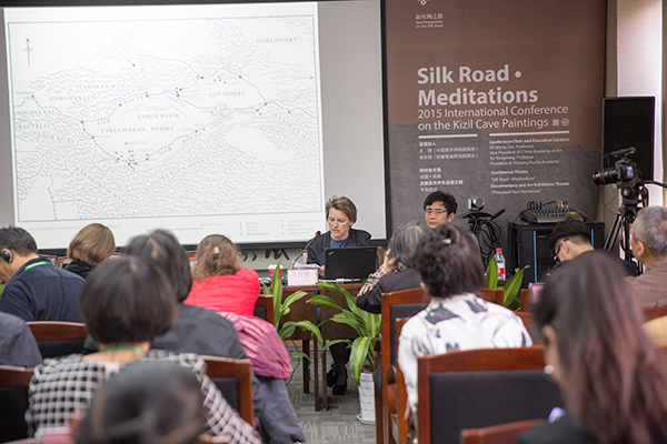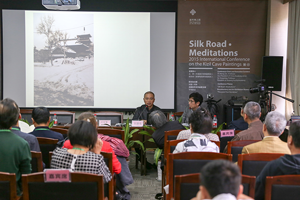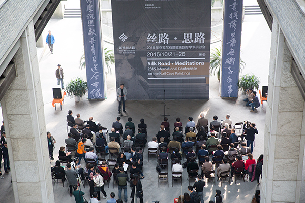 此次研讨会由中国美术学院、新疆维吾尔自治区阿克苏地委宣传部、新疆维吾尔自治区文物局、浙江省归国华侨联合会主办,中国美术学院副院长王赞、新疆龟兹研究院院长徐永明共同策划,这是百年来第一次完全由中国主办,境内最具规模的关于龟兹学研究涵盖艺术史、艺术实践理论、考古和丝绸之路沿线文化等领域的大型国际学术研讨会。 “丝路•思路”2015年克孜尔石窟壁画国际学术研讨会顺应国家“一带一路”战略方针,本着提升丝路文化艺术的建设与传播而组织召开。这是一次关于新疆克孜尔石窟壁画、古迹保护与修复、佛教艺术研究等方面内容的国际学术研讨会。研讨会分为五个板块:一、丝绸之路主题:丝绸之路与佛教艺术传播、龟兹人文地理、龟兹民俗艺术;二、克孜尔石窟壁画考古与艺术研究主题:考古、材料、艺术创造和技法;三、克孜尔石窟壁画与欧亚国家文化艺术互动主题:印度文化、希腊-罗马文化、波斯文化、中原文化;四、克孜尔壁画海外流失部分研究主题:德国柏林亚洲艺术馆、美国国家画廊赛克洛艺术博物馆、大英博物馆等;五、古代壁画的保护与修复主题。参加这次活动的有来自中国、美国、德国、英国、意大利、日本等国家和中国台湾地区等11个国家和地区的著名专家、学者共100余名。包括美国哈佛大学建筑及艺术史系汪悦进教授,德国柏林亚洲艺术博物馆馆长鲁克斯,美国国家画廊史密森亚洲艺术博物馆、古代中国美术部主任凯斯•威尔森,美国耶鲁大学博物馆亚洲美术部主任江文苇等近30位国际学者,及新疆龟兹研究院院长徐永明、中国社会科学院世界宗教研究所张总、中国文化遗产研究院郭宏等国内专家学者。此次国际研讨会共收到了国内外丰富多彩的学术论文40余篇,内容涵盖了丝绸之路和古龟兹的历史、宗教、艺术、民俗、古文字,以及龟兹壁画保护和临摹等。国内外与会嘉宾从多学科、多角度对包括克孜尔石窟在内的龟兹石窟,以及丝绸之路历史、文化、艺术等方面进行了梳理和探讨,力图在学术上有新的突破和创新。