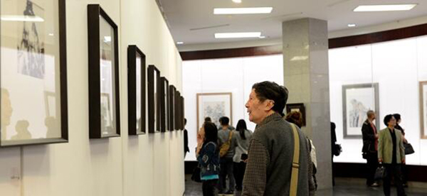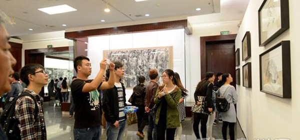 开幕式结束后,参加活动的嘉宾参观展出的绘画作品