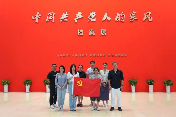 家风文化是中华优秀传统文化的重要组成部分。为了深入学习贯彻习近平总书记关于注重家庭家教家风建设的重要论述,强化党纪学习教育,增强党员教职工的廉洁自律意识,筑牢反腐倡廉的思想防线,7月12日下午,国际教育学院、南特设计联合学院组织党员赴浙江省档案馆参观“中国共产党人的家风”档案展,持续推动党纪学习教育走深走实。学院党委书记王晓芬、院长袁由敏带领在杭教工党员一行人参加活动。