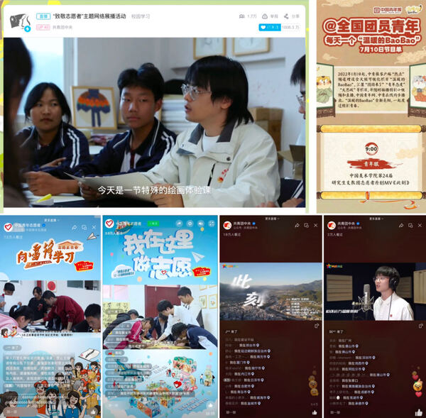 为更好地讲述美院支教团志愿故事,传递美院青年声音,本届支教团成员充分发挥自身抖音强国计划博主、微博校园博主等平台优势,共计发布推送29篇,发布视频、图文56条,在各新媒体平台中产生积极影响,取得较大社会影响力。相关内容截止目前全网获得浏览量累计突破1475.2万次,点赞量突破29.5万次。