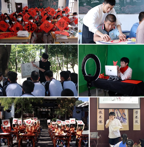 支教团始终坚持以培养审美观念、提高文化素养、发扬美育精神的理念,在景东文庙、开南书院、景东职中、县特殊教育学校等地持续开展“美美讲堂1+100”公益课堂美育活动。将自身专业与传统文化、自然风貌、县域发展相结合,开设《红蕊迎朝礼国庆——吹墨画体验课》、《画里中秋——传统书画体验课》、《以手画心,“益”路有你》等20余门创意美术课程,在潜移默化中弘扬美育精神,有效挖掘学生艺术学习与创造的潜质,帮助学生增长知识、提高审美,树立文化认同感。