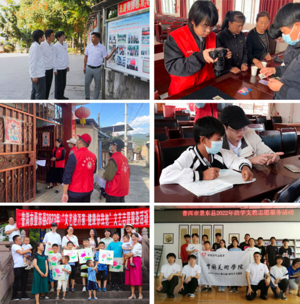 “青年兴则国家兴,青年强则国家强”。2022年7月30日,在校党委和上级团组织的坚强领导下,在校团委、团县委的关系支持下,我校第24届研究生支教团抵达云南景东彝族自治县开展教育帮扶和乡村振兴实践工作。支教团始终以习近平新时代中国特色社会主义思想为指引,坚持“以美育人,美美与共”为宗旨,传承“中国美院助力美丽中国”的文化担当,扎根于当地,服务于当地,利用“新媒体传播”与“艺科融合”之优势,持续在强化思政学习、深研教学工作、打造品牌活动、深化校地合作、讲好支教故事等方面取得显著成果,不断为景东职业高级中学和景东县县域发展创造新路径、探寻新可能,为支教团服务打开新格局。