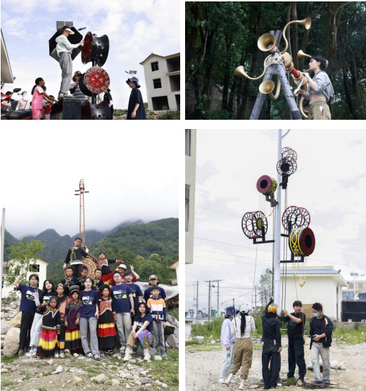 西昌市普格县德育村背靠国家4A级风景名胜区—螺髻山,东邻螺髻山九十九里温泉景区,面拥螺髻山彝寨,又是红军长征路途经之地。普格是彝族火把节的发祥地,拥有以彝族火把节为代表的魅力“阿都”文化。此次社会实践活动是在雕塑与公共艺术学院党委与当地政府历时一年半的探索交流下,通过雕塑与公共艺术的在地创作,旨在以艺术赋能乡村振兴,为当地村民打造一个留存记忆、留住乡愁、浸染烟火气的空间载体。本次实践创作成果呈现3件大型主题雕塑、6件互动声音装置、2件就地取材的公共艺术在地创作作品。创作选题来源于彝族的传统乐器和神话传说,提取了彝族大凉山的文化习俗和艺术风格、图腾等民族元素。团队创作过程中邀请当地彝族小学幼儿园的孩子们互动完成在地创作作品,让美育浸润乡村,为“美丽中国建设”贡献国美力量。