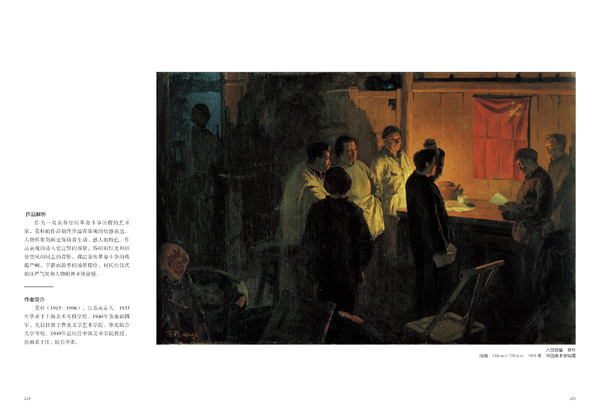作为一名亲身经历革命斗争历程的艺术家,莫朴的作品始终洋溢着准确的情感表达,人物形象刻画也保持着生动、感人的特色。作品表现的是入党宣誓的场景,昏暗的灯光和暗处望风的同志的背影,都渲染出革命斗争的残酷严峻,宁静而简单的场景描绘,衬托出仪式的庄严气氛和人物的神圣使命感。
