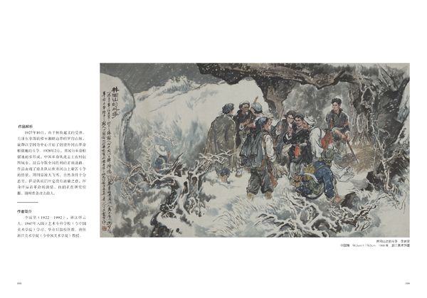 1927年10月,由于秋收起义的受挫,毛泽东率部转移至湘赣边界的罗霄山脉,旋即以宁冈为中心开始了创建井冈山革命根据地的斗争。1928年2月, 井冈山革命根据地初步形成,中国革命从此走上农村包围城市,最后夺取全国胜利的正确道路。作品表现了游击队员在井冈山上艰苦斗争的情景,周围是漫天飞雪,自然条件十分恶劣,但是队员们丝毫没有退缩之意,浑身洋溢着革命的激情,他们正在研究情报,随时准备攻击敌人。