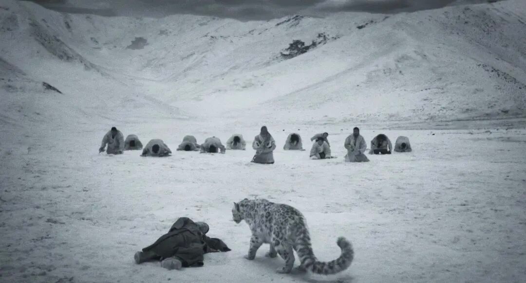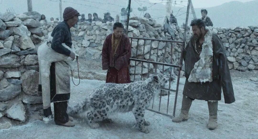 在万玛才旦导演的藏地电影宇宙中,动物一直是传达其哲思的重要意象和灵媒。这一次雪豹成为核心叙事主体,使得影片更为着重探讨了高原上“天地人兽”之间相互依存的关系。影片首次大规模使用高工业水准的CG技术,打造了中国乃至全球首个高清雪豹的数字影像,在壮美圣洁的藏区自然圣境下,雪豹与人之间充满精神性的超现实互动,也将生命的平等尊重、和谐相处与慈悲灵性展现得淋漓尽致。
