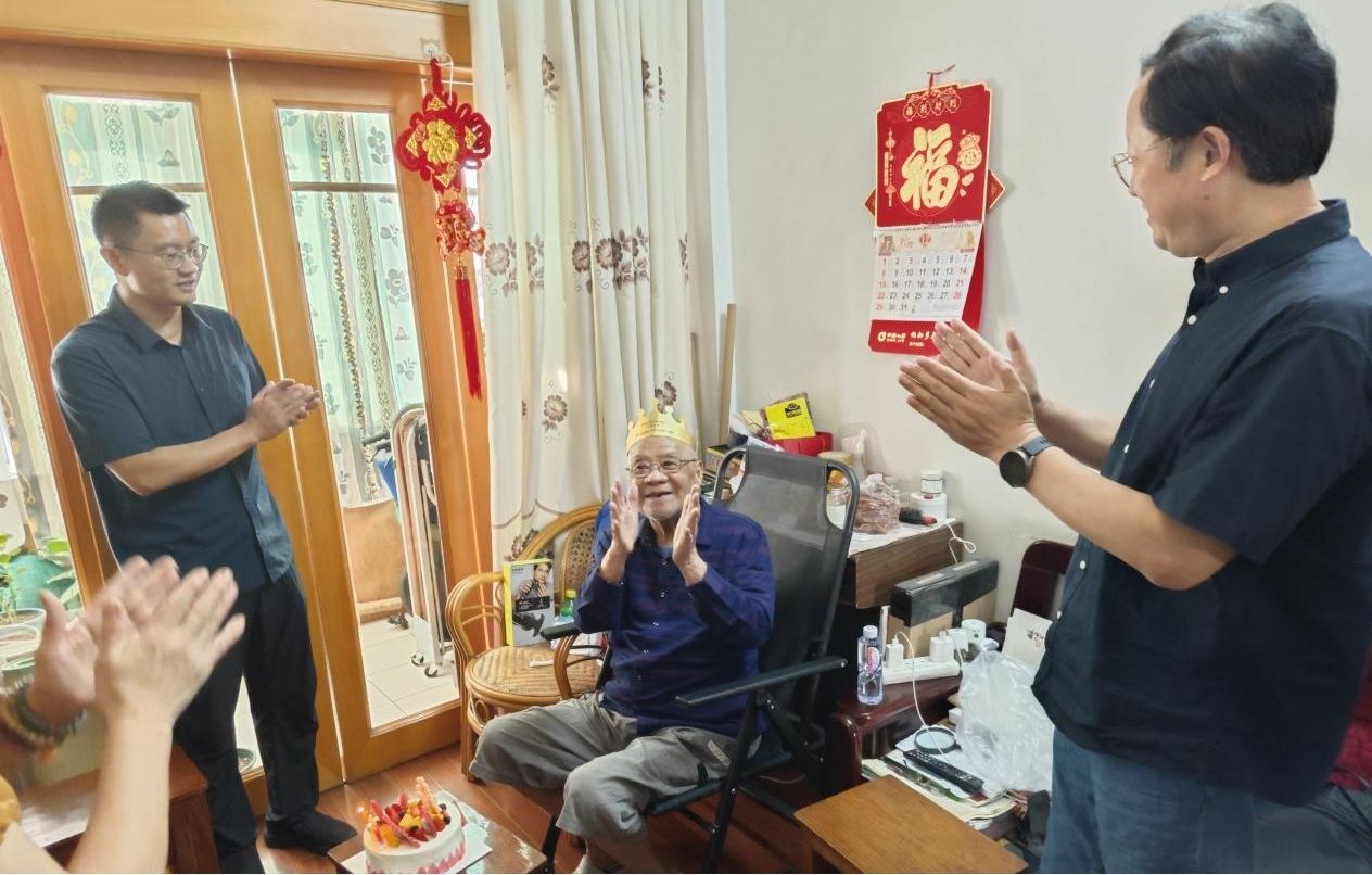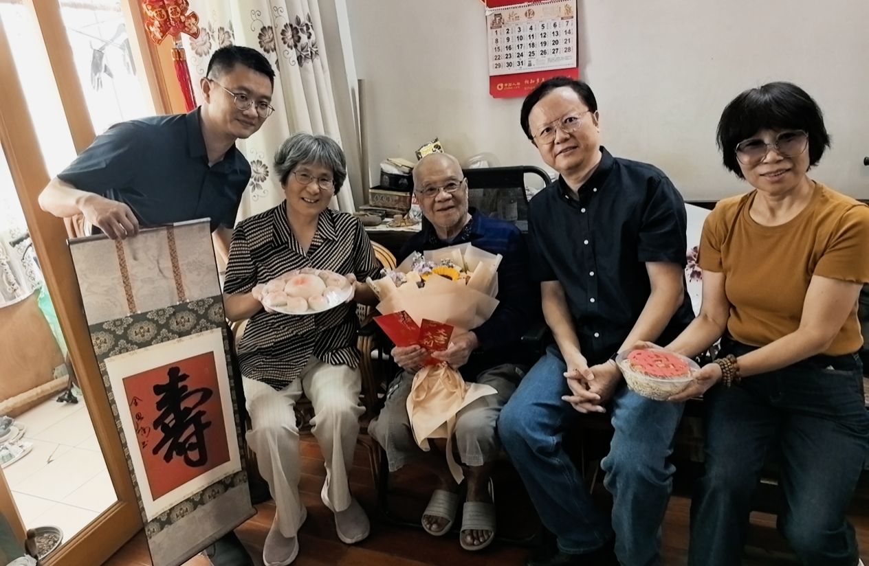 9月26日下午,我校党委副书记孙旭东一行走访慰问了百岁老人——原中国美术学院艺术设计职业技术学院离休干部、中国民主同盟会老盟员马治平。在马老师百岁生日的当天,孙旭东代表学校党委向马老师祝了百岁寿,献上了寿桃、寿面、鲜花和蛋糕。寿星马老师是目前我校离退休教职工中最高寿的,也是我校第三位迈入百岁行列的离退休教职工。