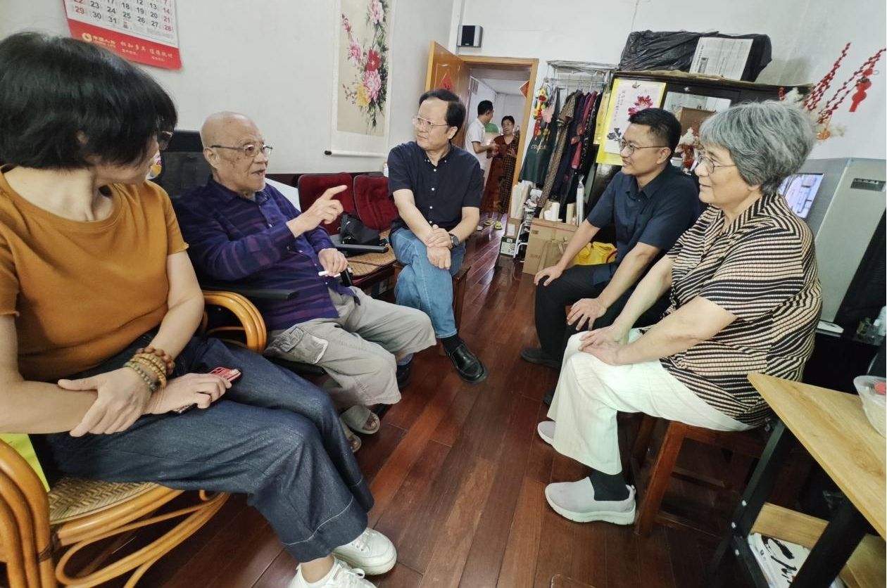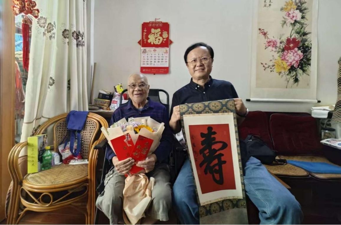 值此纪念中国人民抗日战争暨世界反法西斯战争胜利80周年之际,马老师与孙书记一行交谈甚欢,回忆起他当兵时的峥嵘岁月,与大家分享他的长寿秘诀,感慨当下的幸福生活。孙旭东表示,马老是学校的宝贵财富,他身上所体现的家国情怀与坚韧品格,是国美精神的生动写照,是激励青年师生奋发进取的宝贵财富。离退休工作处副处长沈世龙、原中国美术学院艺术设计职业技术学院退休老教师代表鲍菊香、熊佳宝等陪同慰问。