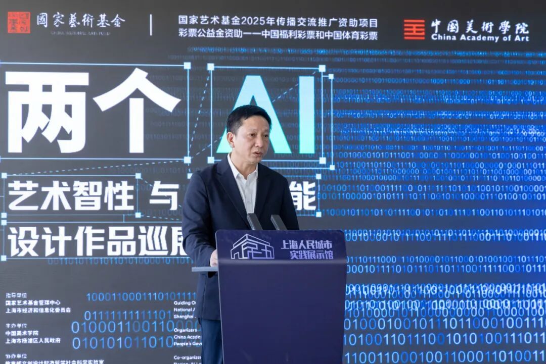 韩绪向长期以来关心和支持中国美术学院的各级领导、社会各界人士,和向所有为展览付出心血的同仁们表示诚挚的感谢。他提到,本次展览是《上海市人民政府与中国美术学院战略合作协议》中的重要任务之一,也是国家艺术基金2025年度传播交流推广项目,2025年世界设计之都大会重点活动。以“两个AI”为主题,汇聚了智能制造的前沿成果,呈现艺术智性与数字智能的深度对话,不仅是中国美术学院在上海的重要学术展示,也是推动“科创+文创”融合发展的切实举措。