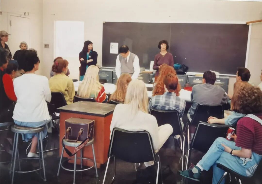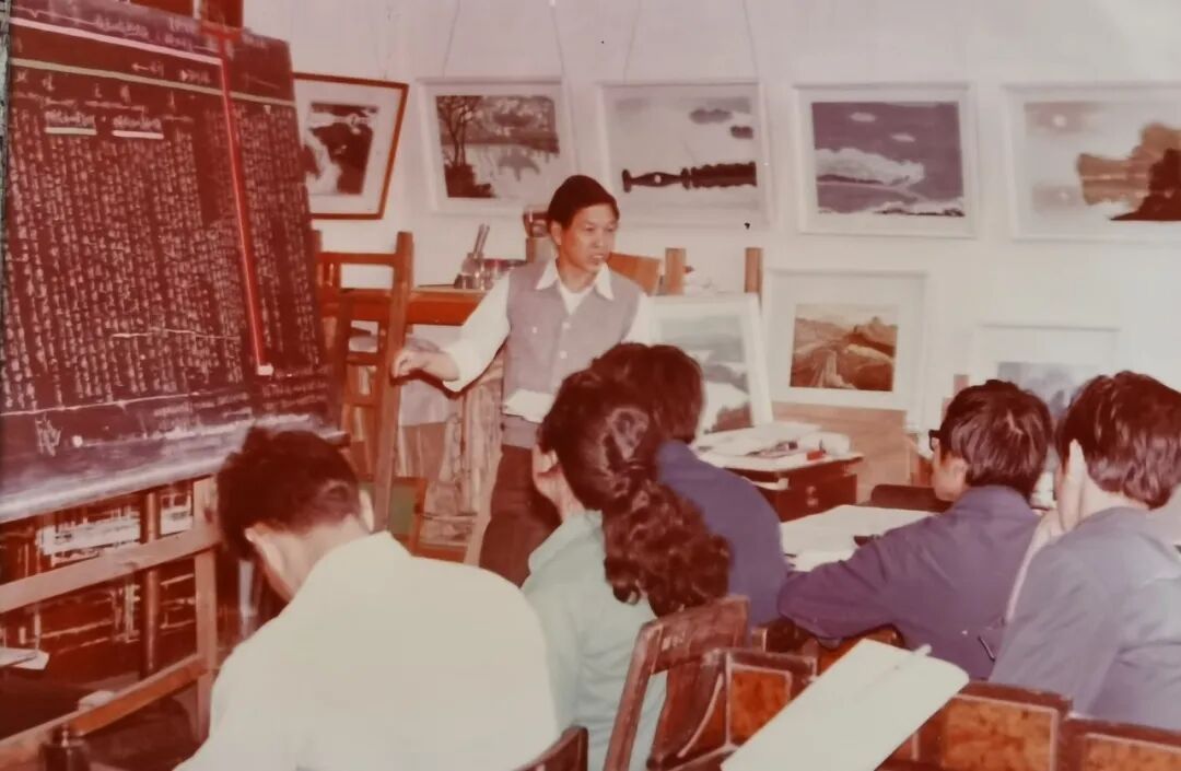 80年代,陆放先生在中国美术学院版画系为学生上水印木刻课