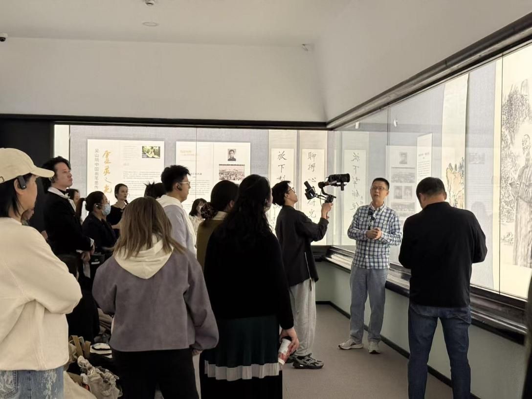 10月23日下午,民进中国美院支部与民进省中医院支部在潘天寿纪念馆举办2025年秋季友好共建活动。会员们参观了“虚灵之光——吴山明中国画笔墨传习展”,赏析民进前辈吴山明先生的艺术创造之路。民进省委会组织部干部王晓玮、卢林熙、民进中国美院支部主委陈永怡、民进省中医院支部主委谢小红出席共建活动。