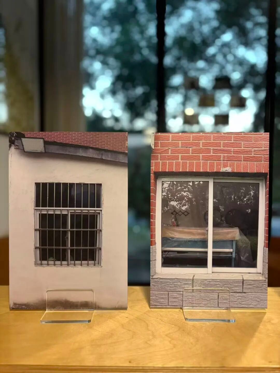 画面聚焦村落里被遗忘的角落:斑驳墙角的幽深窄巷、藤蔓缠绕的废弃柴房、青苔覆盖的石阶转角,还有覆着枯叶的旧石磨、爬满绿苔的断壁残垣。这些无人之地藏着乡村最本真的肌理,在细腻光影中透出静谧而疏离的美感。拍摄中,我偶尔以模糊身影悄然入镜,或倚墙而立,或隐于门后,身影朦胧不喧宾夺主,既暗合“藏身”的双重意涵,也赋予作品创作者与场景共生的温度。展陈上,选数张具窥视感的照片置于黑盒,观者需通过顶端猫眼观看,沉浸式感受隐秘意境,在窥视与被窥视的互动中,引导观者重新审视那些被日常忽略的诗意角落。
