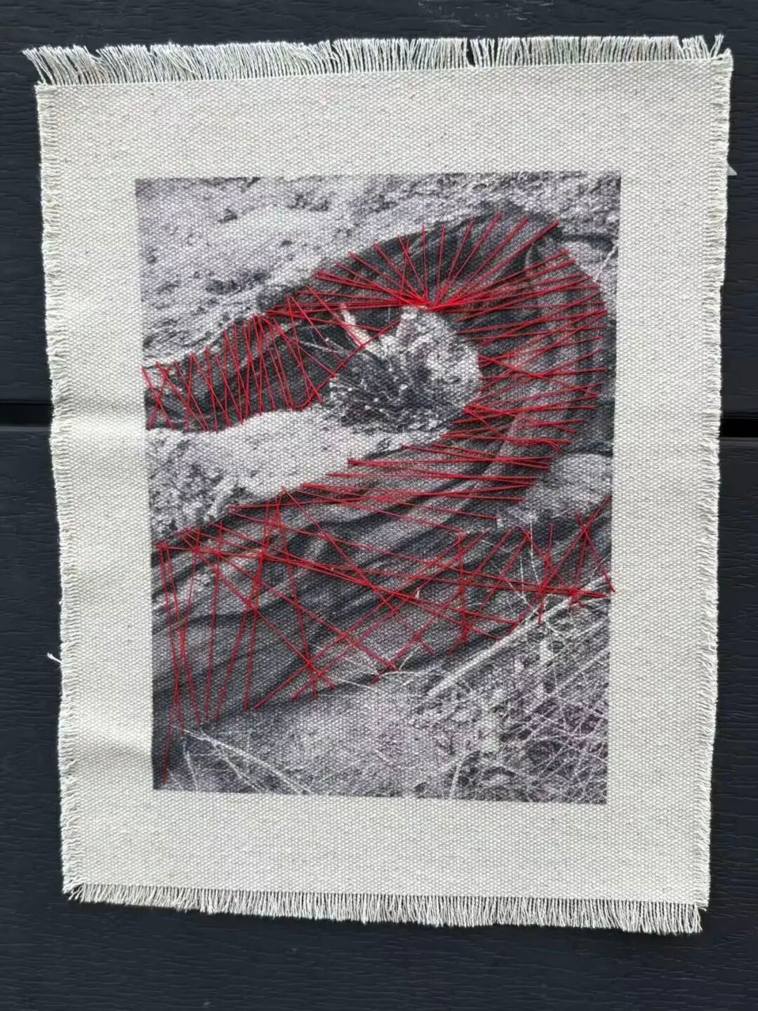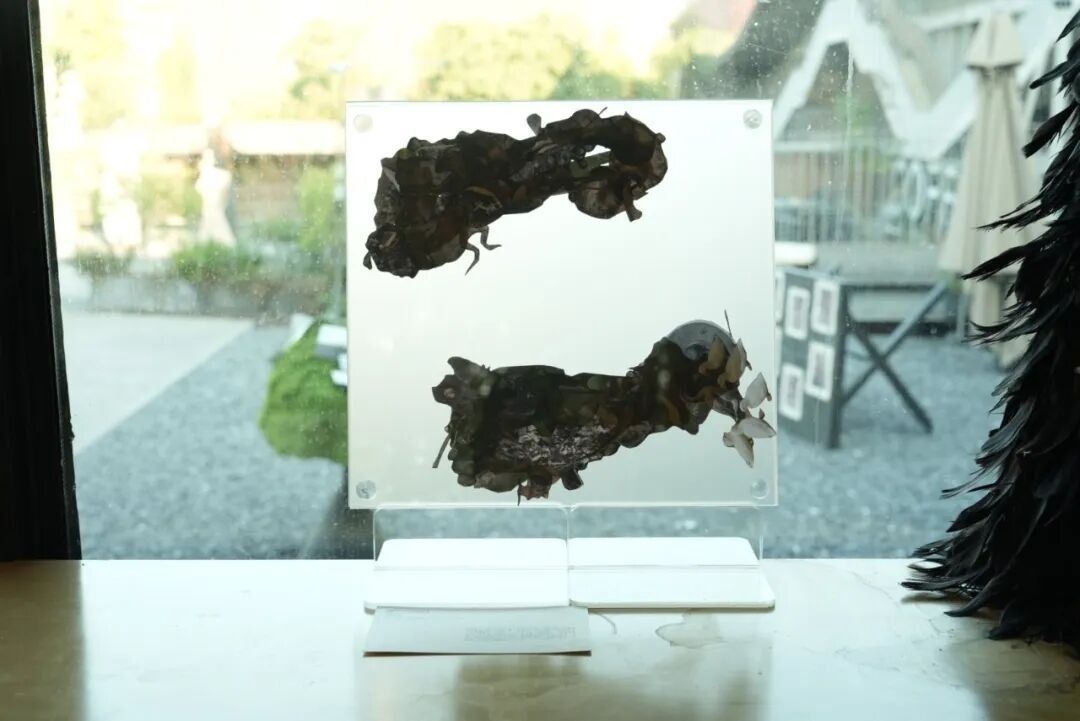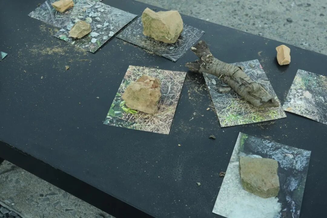 这件拼贴作品,试图捕捉一个静谧而容易被错过的瞬间。我们常常匆匆掠过树荫,却未曾留意其下隐藏的整个世界——一片落叶、一枚落果、一块斑驳的树皮,或是被人遗落的小物。它们是光影的碎片,是休息时光的见证。将这些被忽视的“躲在树荫下的物体”收集、裁切,重新拼接成一对在阴影中休息的脚印。它邀请观众俯身欣赏,在破碎的阴影中发现完整,在大树遮蔽处,寻见一处属于自己的阴凉歇息处。