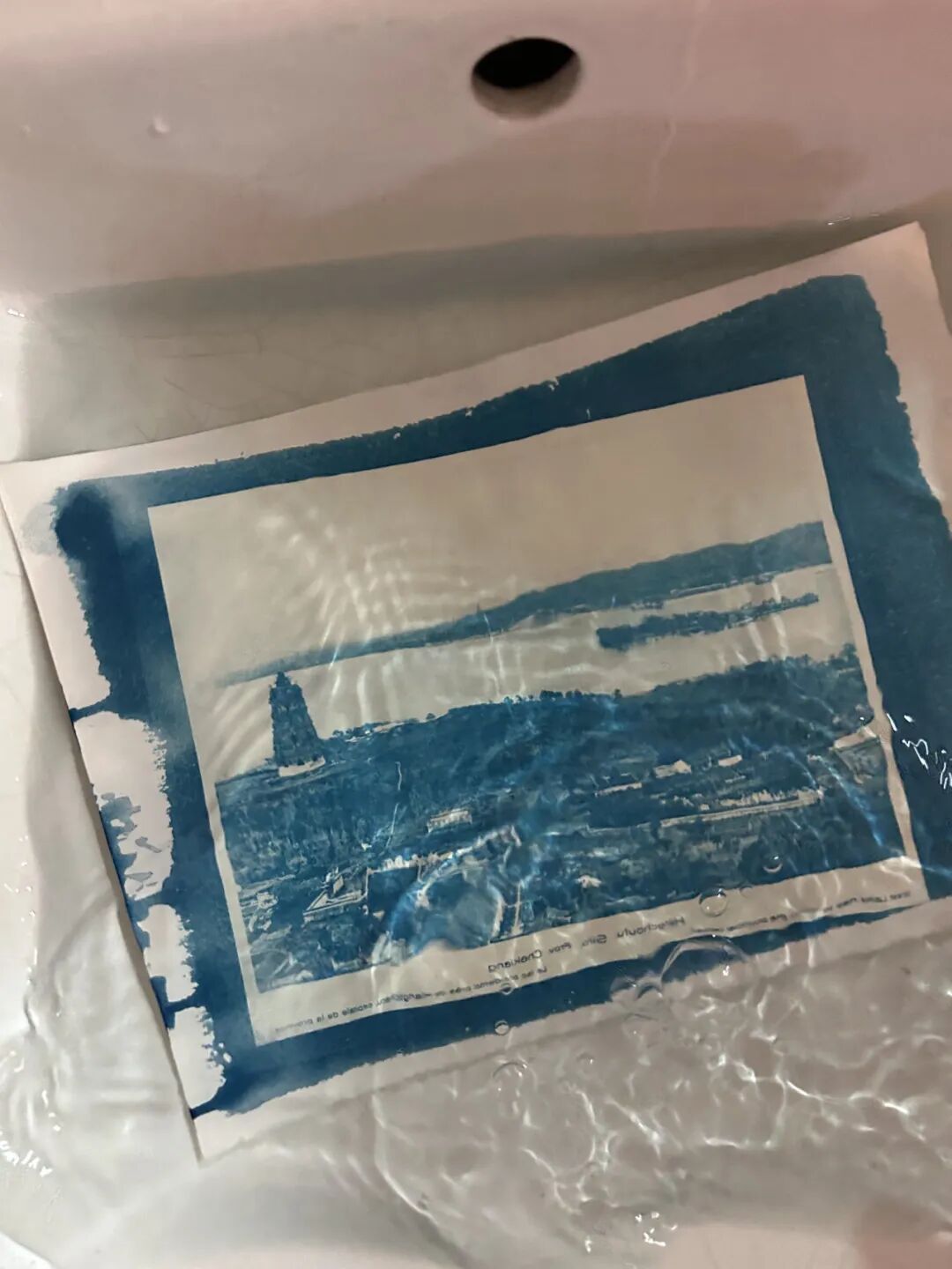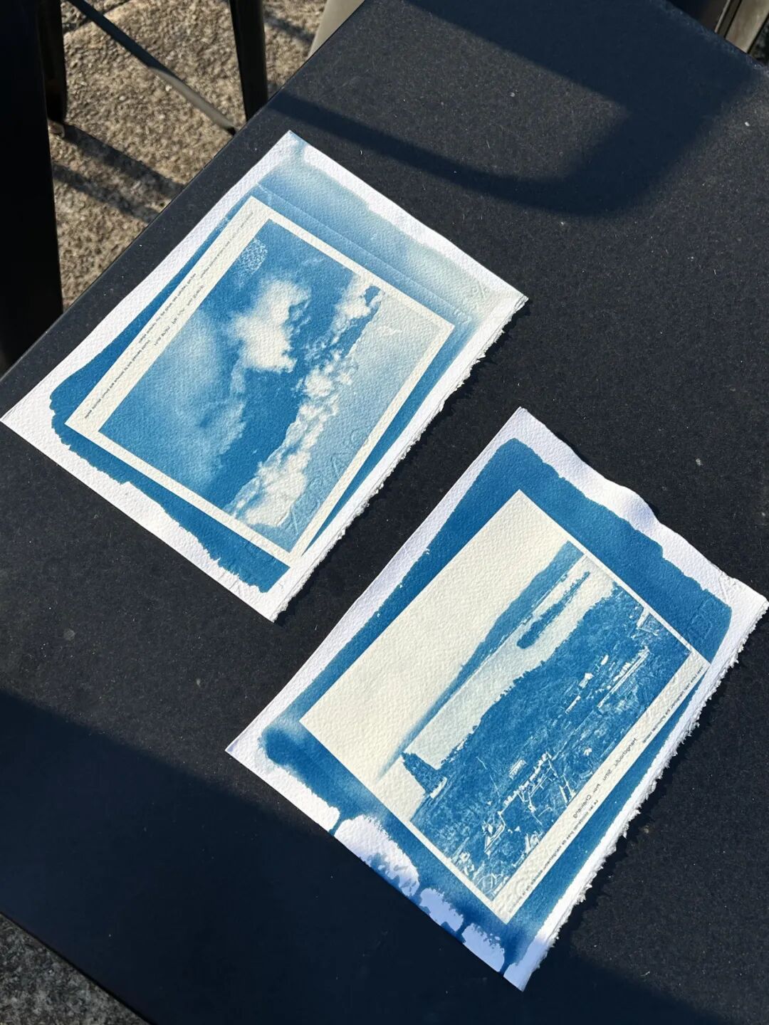 展览现场还有一个与观众互动的板块——蓝晒活动,蓝晒是一种经典的传统摄影工艺,通过柠檬酸铁铵与铁氰化钾溶液感光,经阳光照射后可生成普鲁士蓝的影像,是操作简便却充满惊喜的古法成像技术。