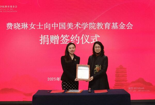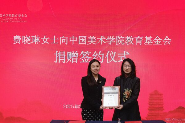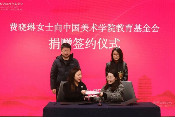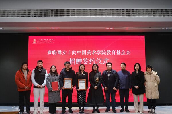 2025年2月20日,天则书院费晓琳女士向中国美术学院教育基金会捐赠签约仪式在中国美术学院南山校区南苑大会议室举行。中国美术学院党委副书记傅巧玲,中国美术学院教育基金会秘书长李红艳、中国美术学院办公室主任韩亮、中国美术学院学工部部长胡敏、中国美术学院团委书记徐增鎏、中国美术学院校友会秘书长丰嫦,天则书院创始人费晓琳等出席签约仪式。