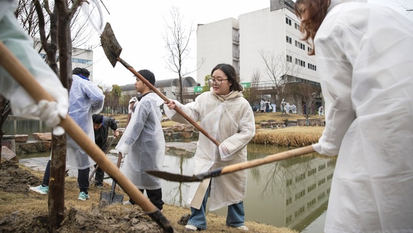 据介绍,本次活动还开设了“命名一棵树”“领养一株植物”“拥抱一棵树”等环节。通过活动,同学们为树命名,增强主人翁意识;百余位师生现场认领植物。活动深度融合了劳动教育与生态美育,后续还将延伸出“植物领养日记”等主题劳动教育课程。