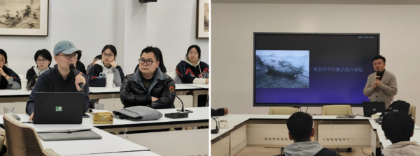下午的专题讲座由民进专家团成员陈超历和端木琦老师主持。两位老师围绕高校教学模式、艺术创作及学生作品等话题展开分享,结合自身教学经验,探讨了当前高考政策变化下专业课和素质提升课程的调整方向。讲座过程中,专家们展示了美院学生的作品及作业中面临的挑战,鼓励同学们积累丰富的素材,形成独特的创作风格,同时也强调了基本功的重要性。
