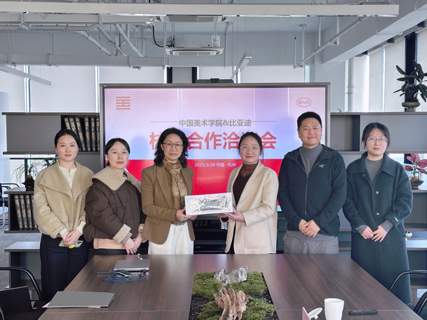 3月20日下午,比亚迪集团总部校园招聘经理左敏一行人来访中国美术学院,校党委副书记傅巧玲会见来宾并座谈。