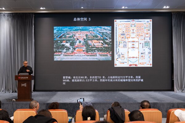 巫鸿教授简要回顾了此前两场讲座的核心内容,并重新阐释了“总体空间”这一关键概念,进而引出本次讲座的焦点议题——紫禁城中的养心殿与倦勤斋,二者分别象征着乾隆皇帝的政务活动中心与设想中的退休生活空间,承载着独特的历史文化内涵与空间意义。