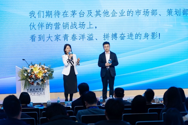 贵州茅台酱香酒营销有限公司党委委员、副总经理卓洋洋与广告人文化集团副总裁、创意星球总经理、学院奖组委会副秘书长陈晓庆现场联合发布实习生计划及名师推荐信计划